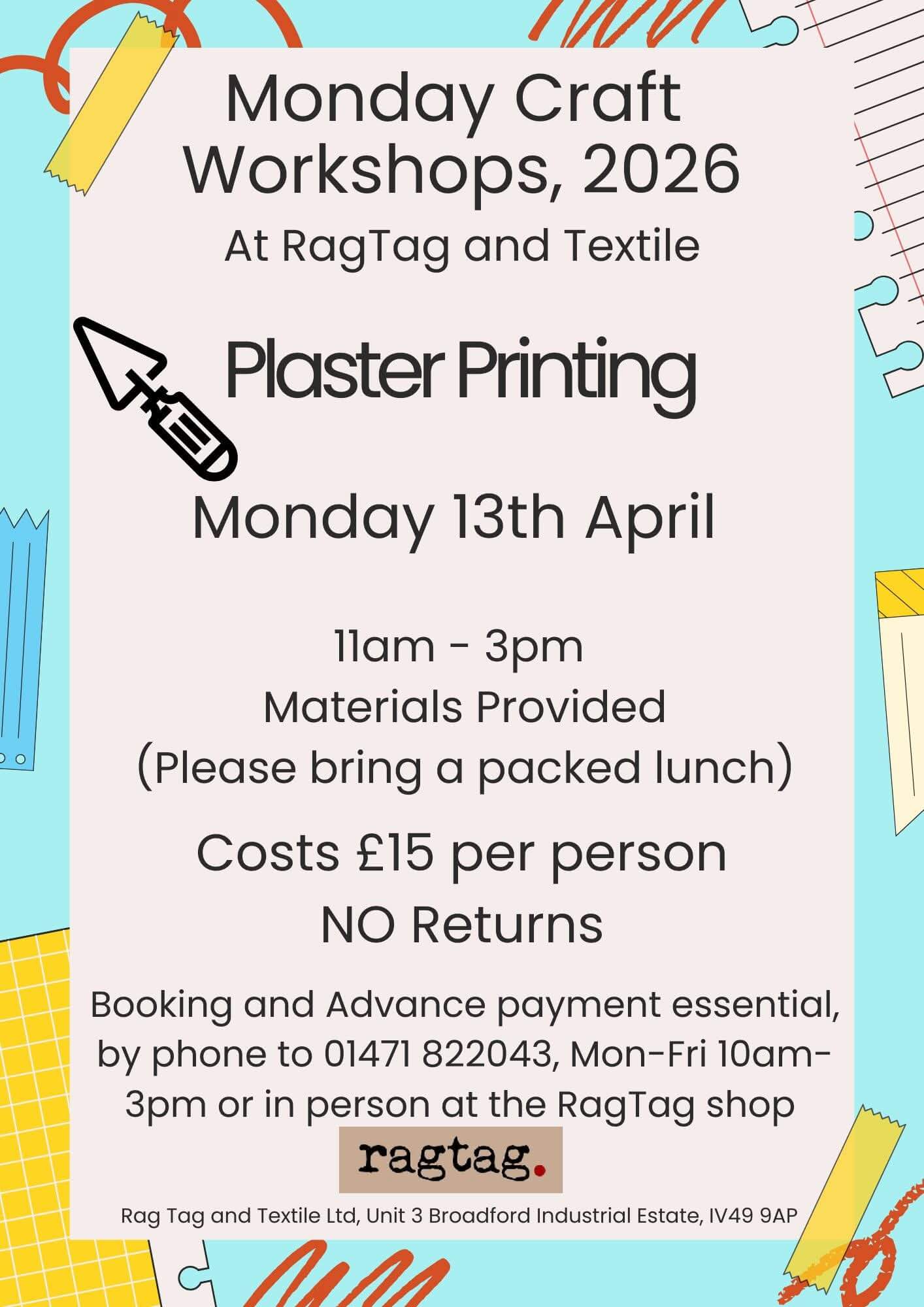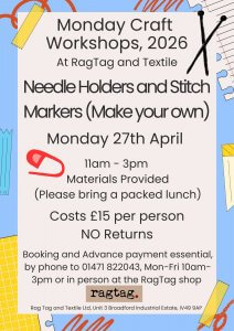 Places are limited, so make sure you book your place. Only £15 per session (non-refundable), every workshop is supported by a tutor and is suitable for all abilities. A great opportunity to try a new craft, or develop your skills, in a relaxed and supported space.